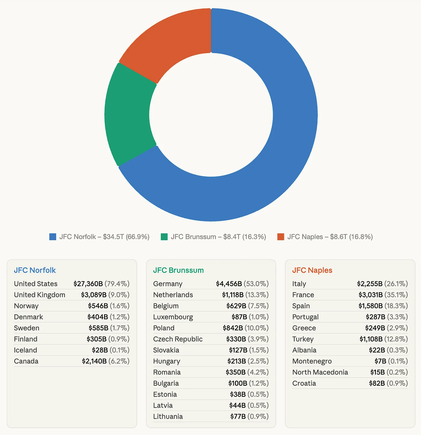 The three JFC’s by GDP. Sources: NATO, IMF, World Bank via Anthropic.