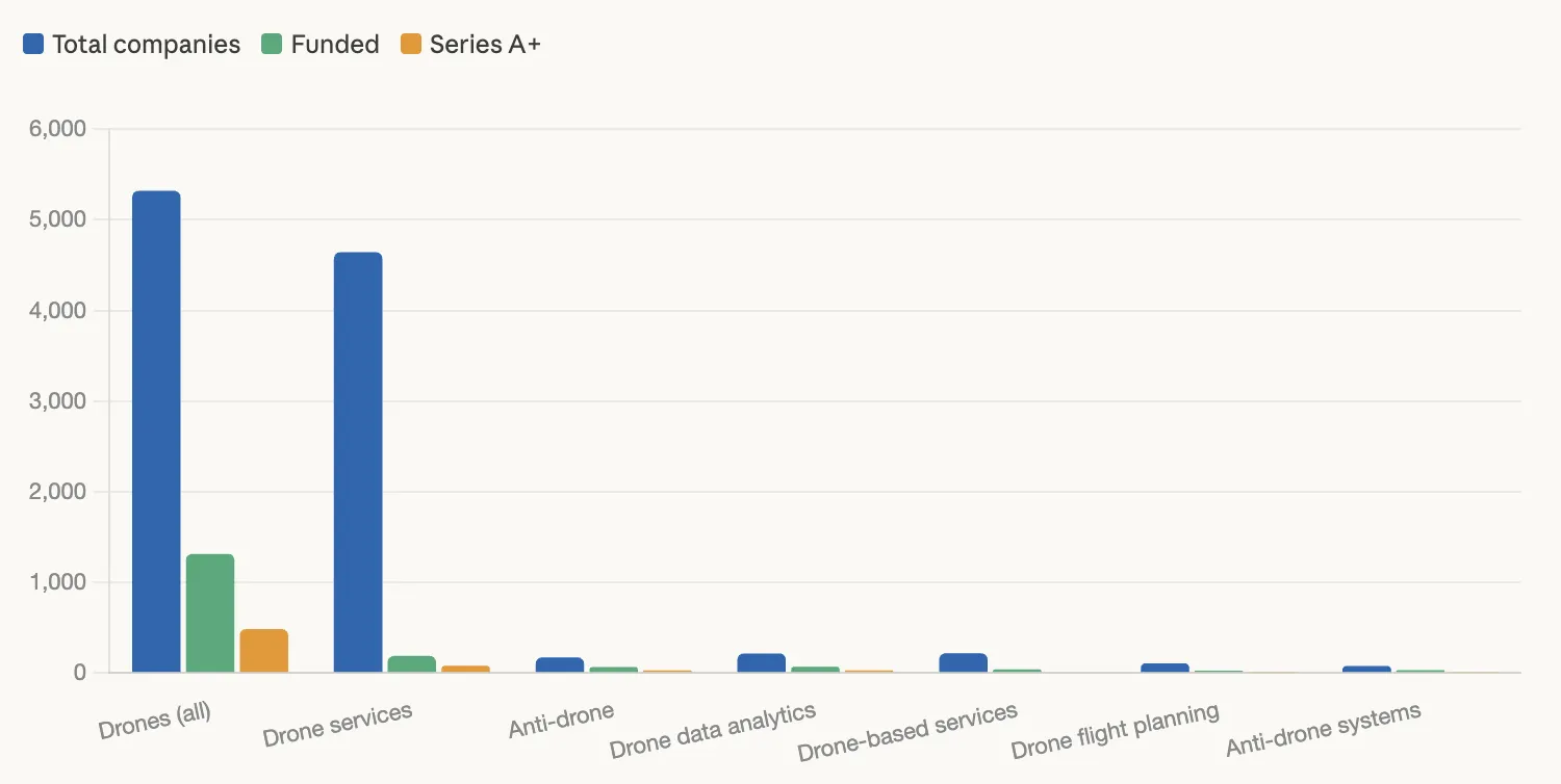 The global drone market at the end of 2025. Source: Tracxn/Failory via Anthropic.