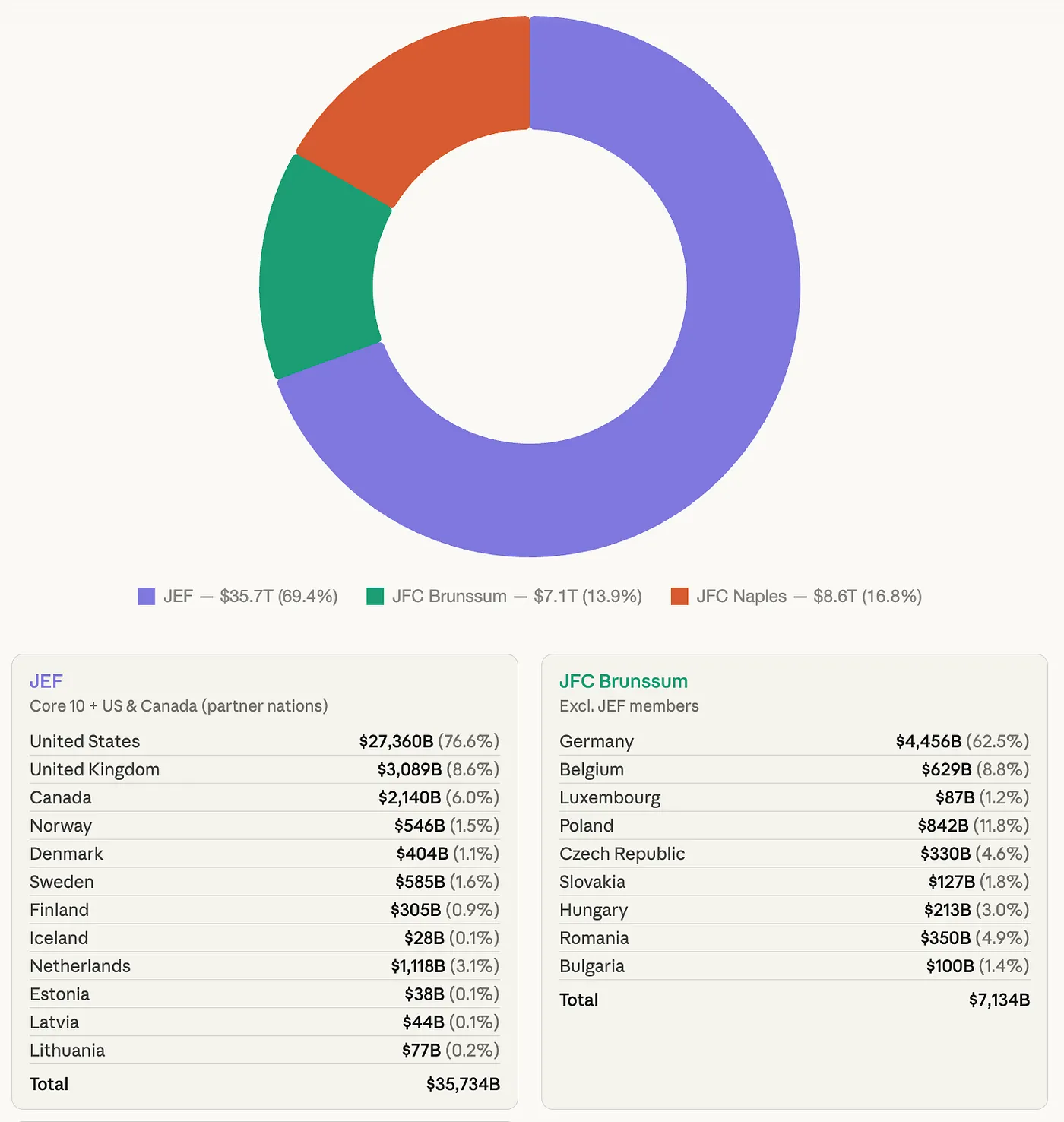 JEF vs the JFC’s by GDP. Sources: NATO, IMF, World Bank via Anthropic.